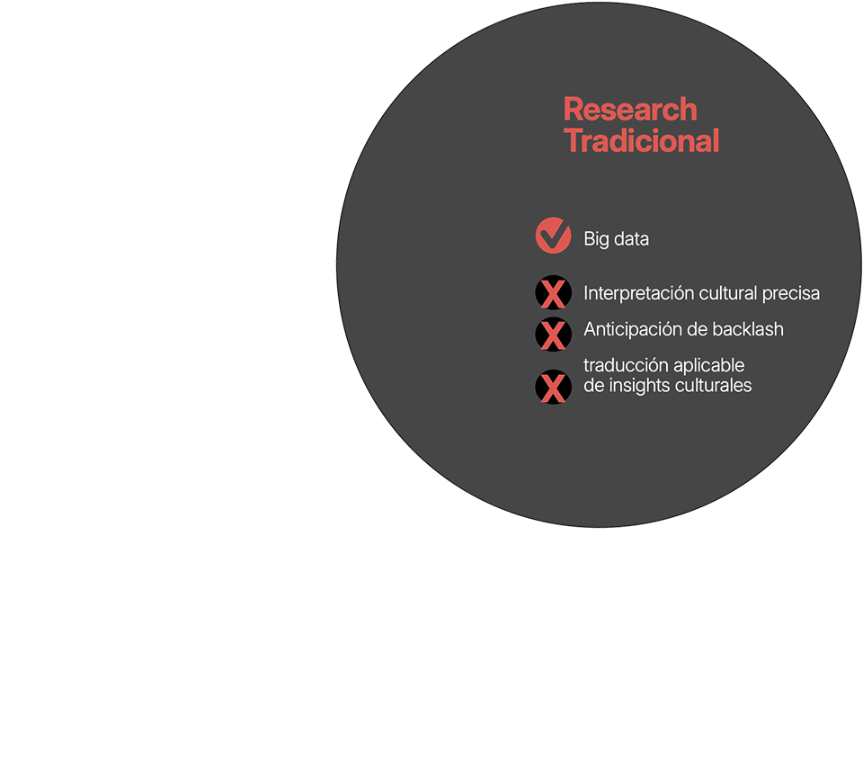 Te dan el dato (p.ej. «el 30% se siente triste») pero no el contexto cultural para actuar y suelen ser generalistas y lentas.